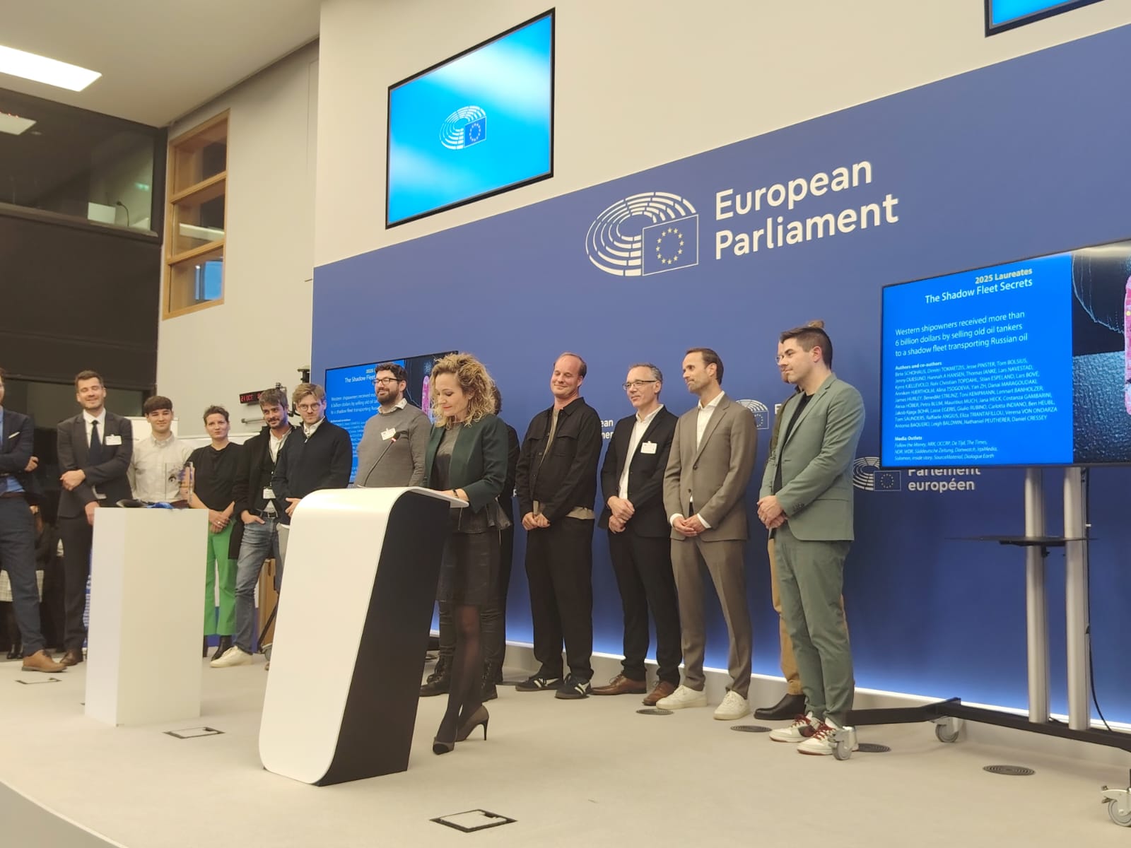 Nagradu je osvojila grupa istraživačkih novinara okupljena u europskom konzorciju Follow the money za tekst o tome kako europski brodari zarađuju milijarde iznajmljujuci tankere Rusima za transport sankcionirane nafte - The shadow fleet.