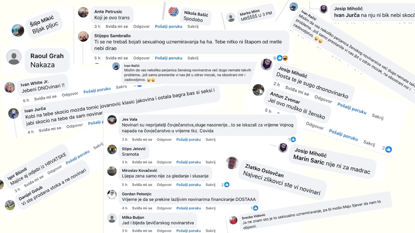 I ponovo je uslijedila lavina primitivizma, uvreda, ruganja i mržnje, uglavnom upakiranih u standardnu formu internetskog junaštva iza čudnih profila. Ponekad kada vrijeđanja prerastu u prijetnje prijavljujem, često uglavnom brišem, ne zbog sebe, nego zbog svojih najbližih koji zaista ne trebaju čitati gadarije poput: „Nakaza.“, „Koja glupost i feminističko sranje“, „Jebeni DNovinari!!“, "Pogledaj se u ogledalo.“, „Dosta te je, dnovinarko.“