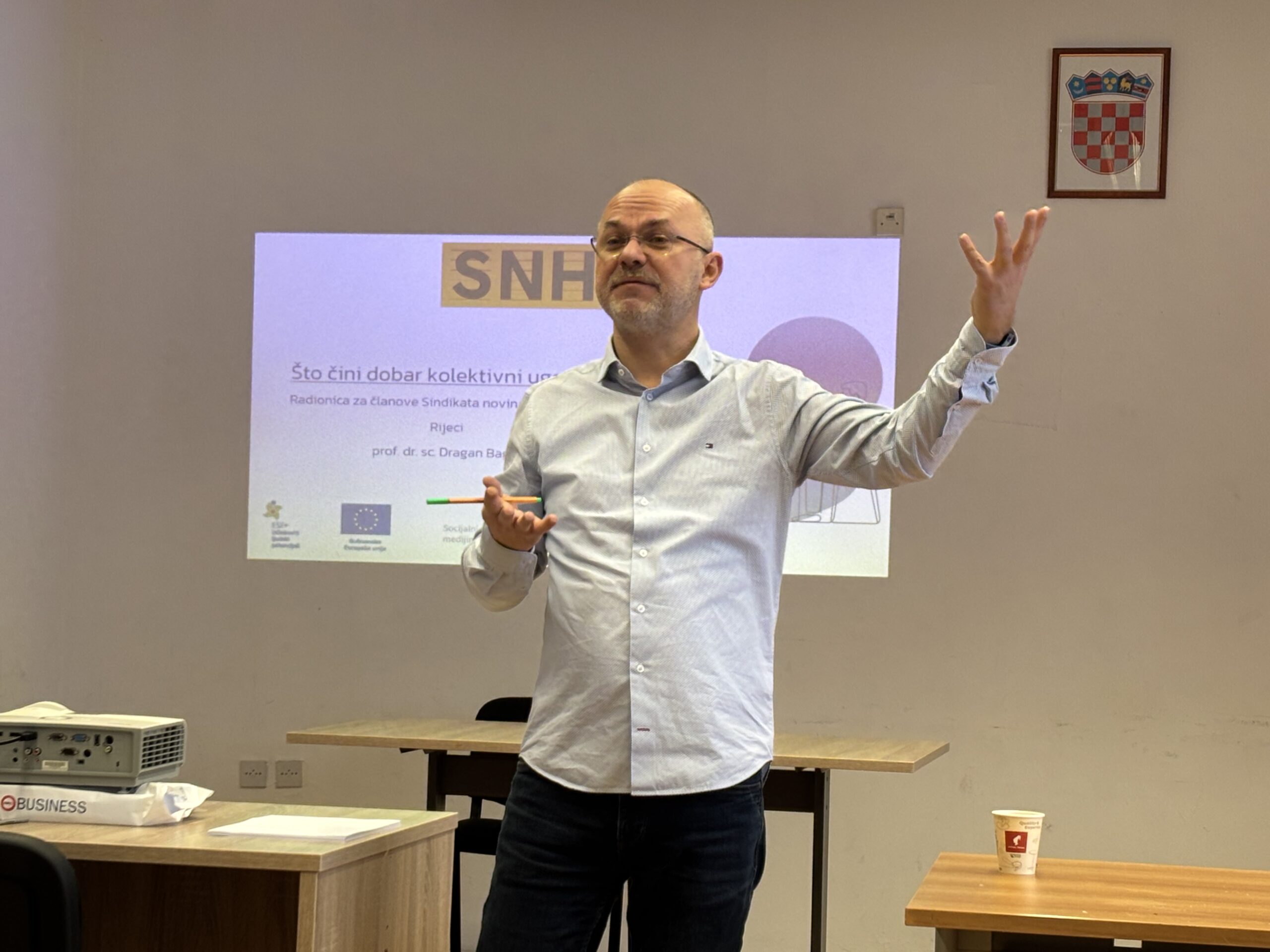 U okviru Sindikalne škole najavljujemo novu radionica „Što čini dobar kolektivni ugovor?“, koja će se održati 5. veljače u Zagrebu, u prostorima HRT-a, Prisavlje 3, s početkom u 10:00 sati. Radionica se provodi u sklopu ESF projekta „Socijalni dijalog za promjene: jačanje kapaciteta socijalnih partnera u medijima kroz osposobljavanje i suradnju“. Radionicu vodi prof. dr. sc. Dragan Bagić, profesor sociologije na Filozofskom fakultetu Sveučilišta u Zagrebu i jedan od vodećih domaćih stručnjaka za industrijske odnose i socijalni dijalog. Doktorirao je u području industrijskih odnosa, a kolektivno pregovaranje i radni odnosi već su dugi niz godina u središtu njegova znanstvenog i stručnog rada. Kolektivno pregovaranje nalazi se u samoj srži sindikalnog djelovanja, a kolektivni ugovor jedan je od najvažnijih instrumenata zaštite radnih uvjeta, plaća i dostojanstva radnika. Ova radionica osmišljena je kao prostor učenja i razmjene iskustava, ali i kao konkretna podrška sindikalnim povjerenicima i pregovaračima u njihovom svakodnevnom radu, pripremi kolektivnog pregovaranja i radu na kolektivnom ugovoru. Radionica je koncipirana kao interaktivna edukacija koja povezuje teorijski okvir s konkretnim primjerima iz prakse. Sudionici će se baviti ulogom kolektivnih ugovora u regulaciji odnosa na tržištu rada, analizom njihovih odredbi te načinima na koje se kolektivni ugovori mogu unaprijediti kako bi bili jasniji, provediviji i relevantniji za radnike. Poseban naglasak stavlja se na proces kolektivnog pregovaranja, od pripreme i definiranja pregovaračke platforme do vođenja pregovora i mobilizacije članstva. Radionica se održava na HRT-u, u trenutku kada su u toj kući aktualni pregovori o kolektivnom ugovoru. Time se otvara prostor za povezivanje sadržaja radionice s realnim pregovaračkim situacijama i izazovima s kojima se sudionici susreću u praksi, ne samo na HRT-u nego i u drugim medijskim kućama i sindikalnim sredinama, a važno je naglasiti da je radionica namijenjena sindikalnim povjerenicima, članovima pregovaračkih timova, sindikalnim aktivistima i predstavnicima drugih sindikata i medijskih kuća, kao i svima koji žele ojačati svoje kompetencije za aktivno sudjelovanje u socijalnom dijalogu i unapređenje radnih odnosa u medijskom sektoru.