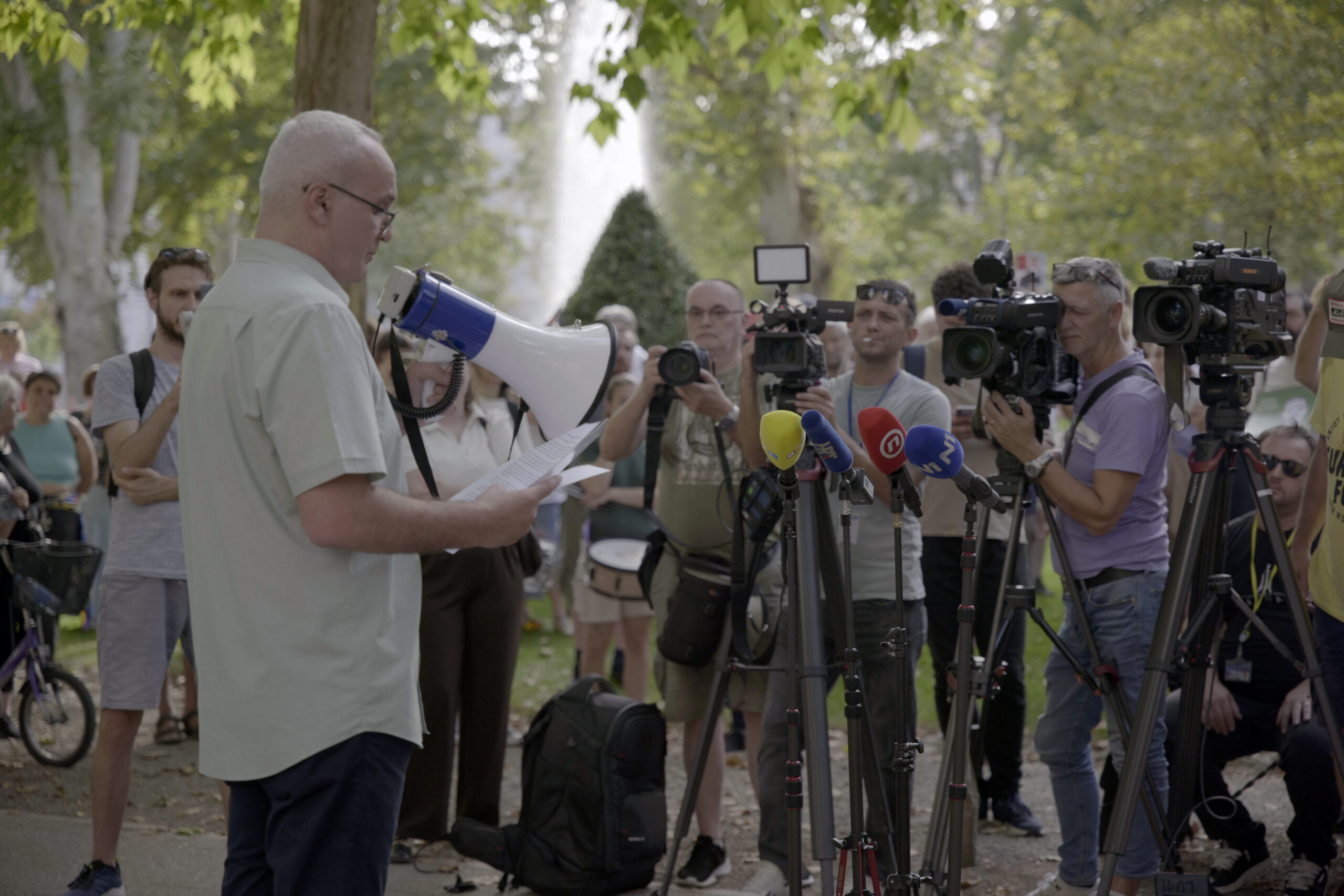 Današnji prosvjed samo je jedan od mnogih glasova u svijetu protiv nepravde – poziv na reakciju. Budimo ljudi, budimo solidarni. Nemojmo se ponašati kao da se to nas ne tiče. Ne možemo biti nijemi na svakodnevno gaženje ljudskih prava koje se događa pred očima cijeloga svijeta. Plač djece kojoj nije uništeno samo djetinjstvo, već, nažalost, i budućnost, nešto je što bi otopilo i najveću santu leda na svijetu. Uništene obitelji nisu zalog bolje budućnosti svijeta u kojem živimo. S ovog mjesta još jednom upućujemo poziv Vladi Republike Hrvatske da bude na pravoj strani povijesti, da zauzme jasniju i odlučniju politiku kada je riječ o situaciji u Gazi. Ono što se događa u Gazi, sunovrat je ljudske civilizacije. Šamar ljudskoj civilizaciji, nešto što je strašno i neprihvatljivo. I dok sada ovdje stojimo, nažalost, velika je vjerojatnost da upravo u ovom trenutku neko dijete, žena ili netko od naših kolega bude ubijen. Namjerno!